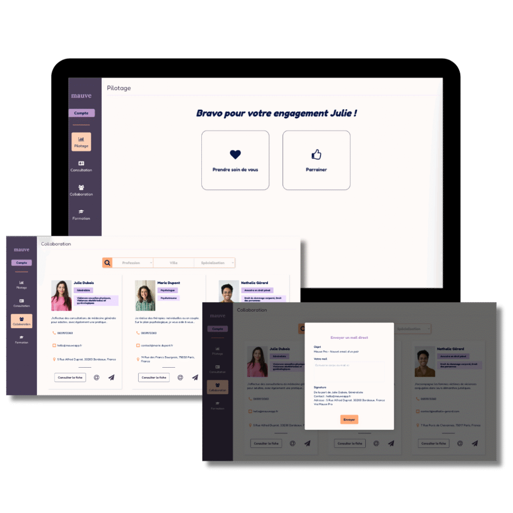 Nous proposons une solution complète composée de deux plateformes synergiques : Mauve Pro pour les libéraux et Mauve pour le grand public